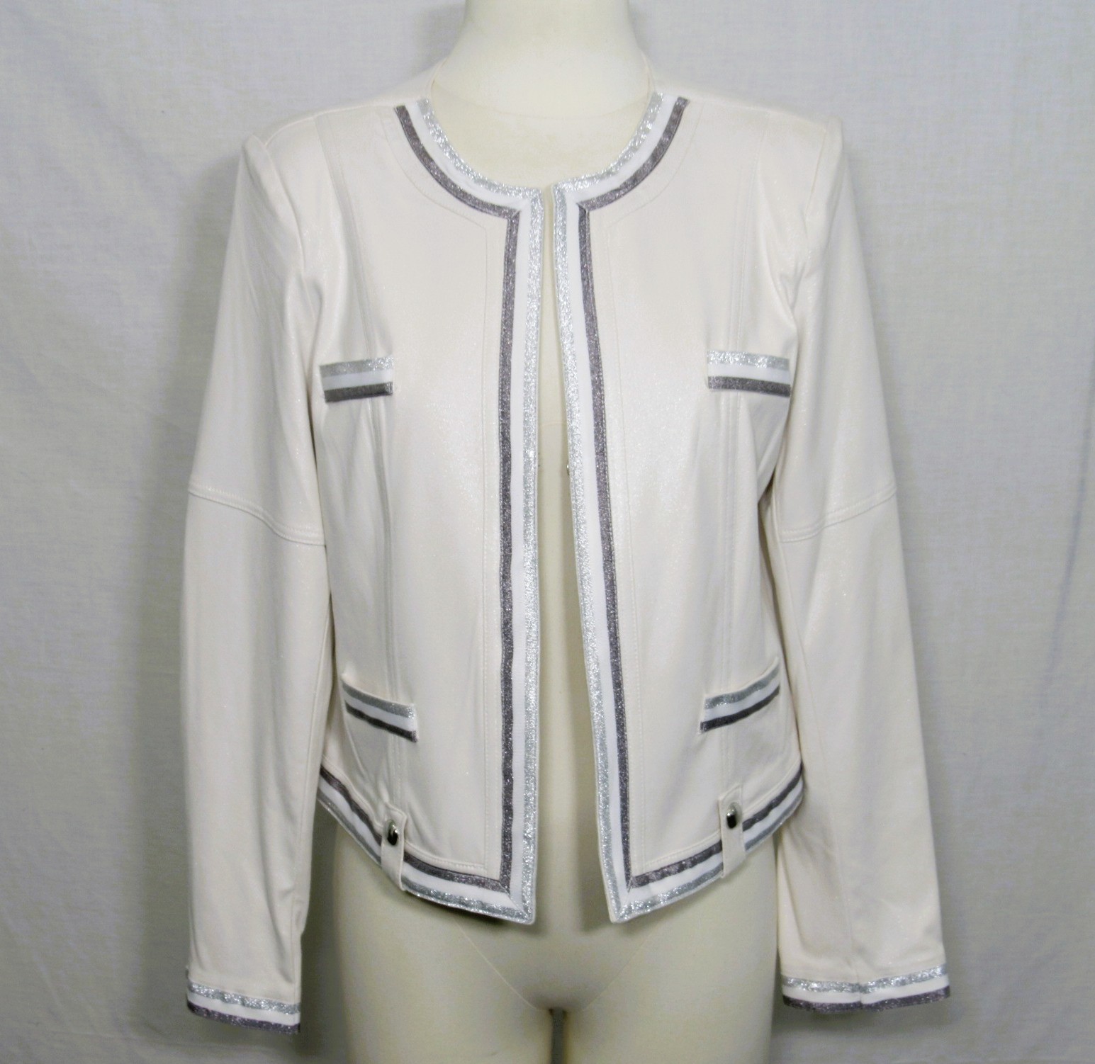 Embellished Open Front Moto Style Novelty Jacket by Lena Gabrielle;
