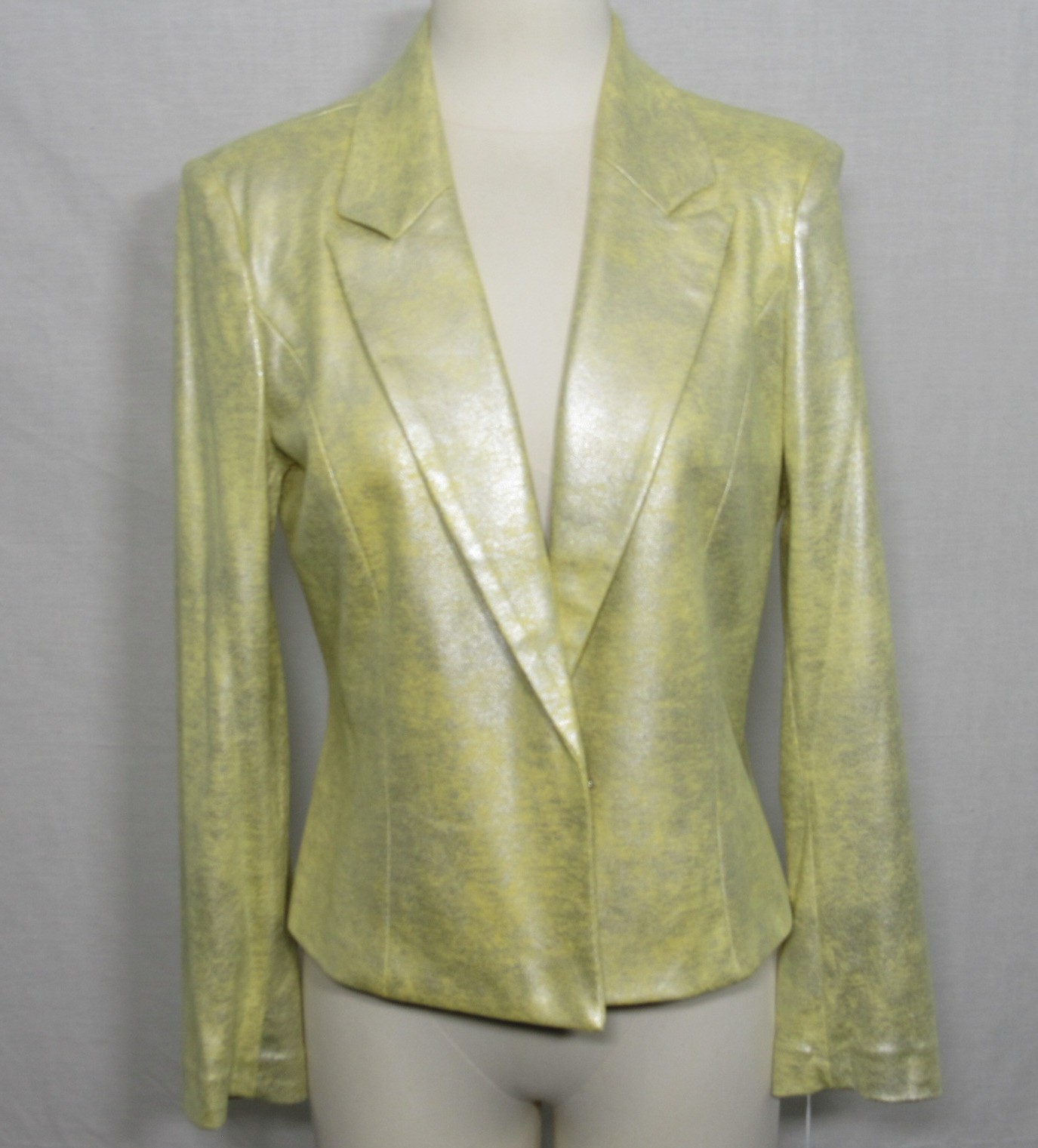 Fully Lined Long Sleeve One Button Vegan Leather Novelty Jacket by Inight New York;