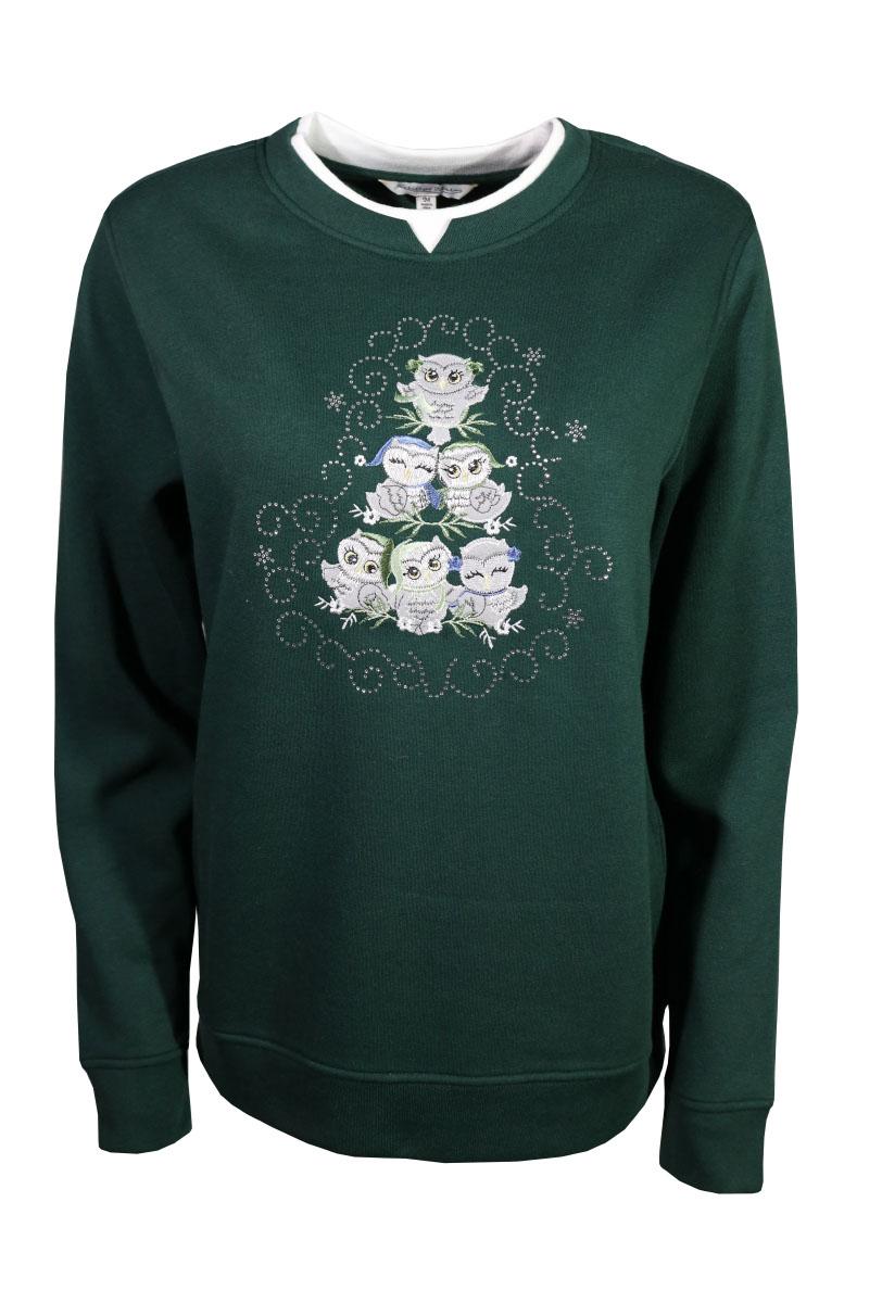 Embellished Long Sleeve Embroidered Double Collar Fleece Pullover by Heritage Charm;