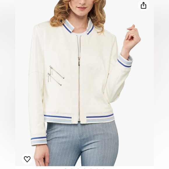 Long Sleeve Full Zip Textured Stretch Vegan Leather Baseball Jacket by Inight New York;
