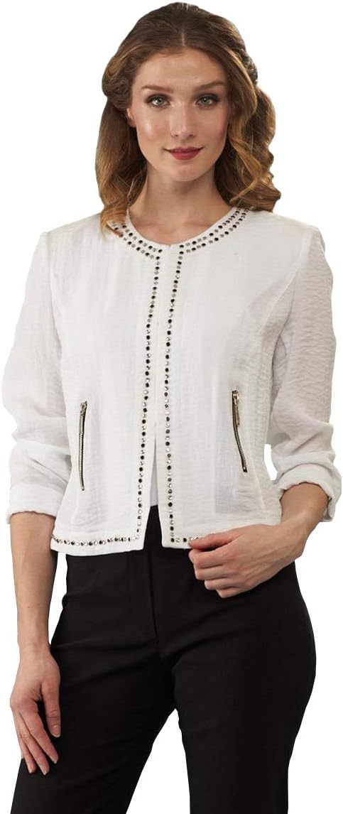 Embellished Open Front Moto Style Novelty Jacket by Lena Gabrielle;