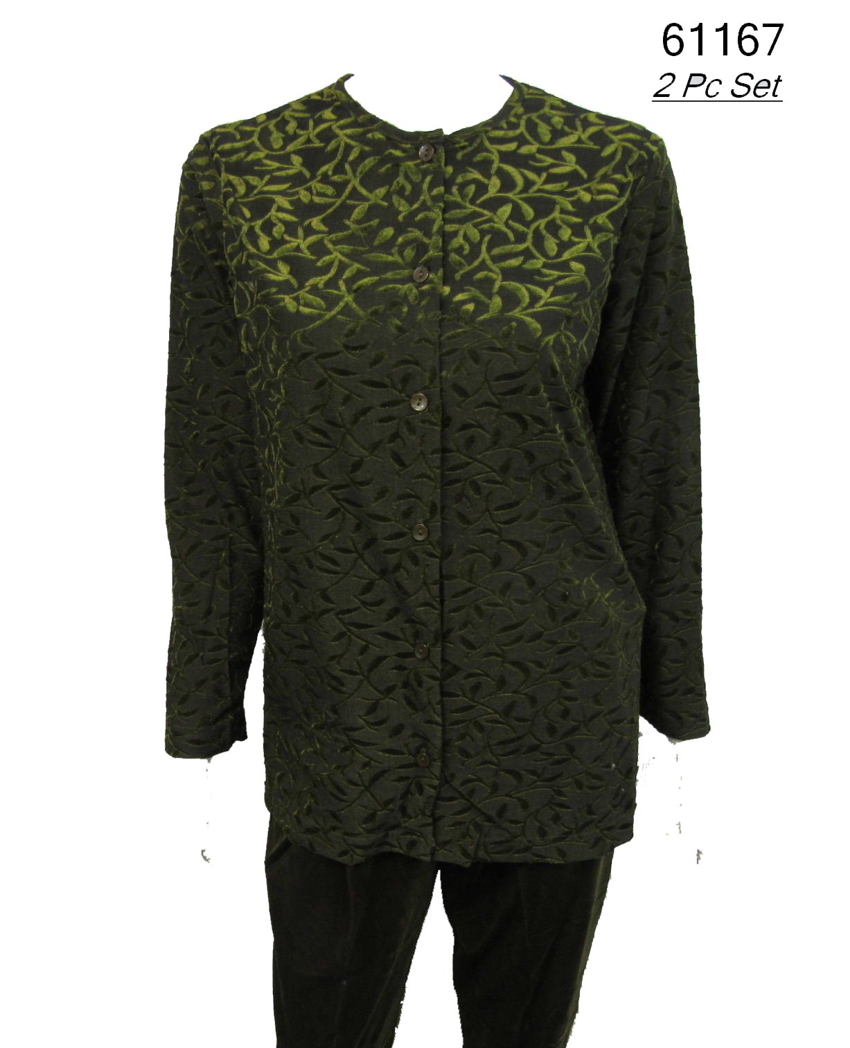 2 pc Solid Textured Velour Pant Set by Adolfo Sport; In Olive