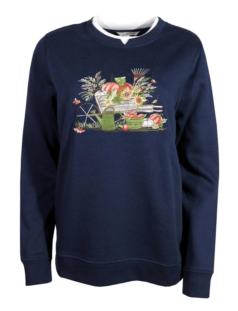 Embellished Long Sleeve Embroidered Double Collar Fleece Pullover by Heritage Charm;