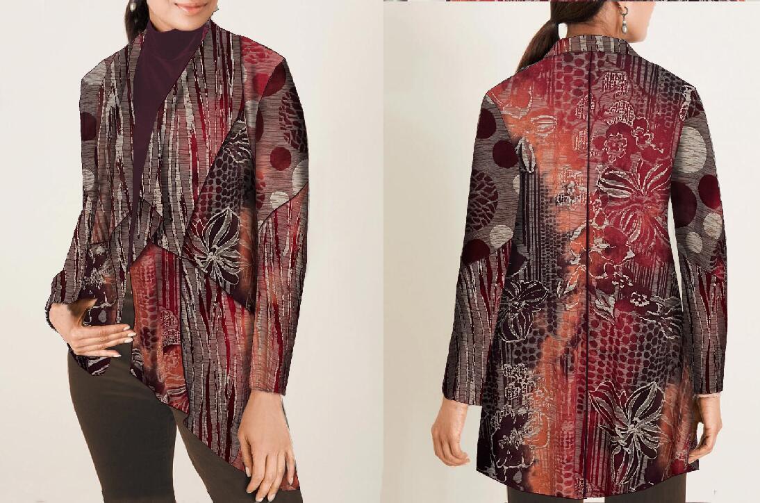 3/4 Sleeve Mixed Fabric Novelty Open Front Cardigan by Kamana; Washable 80% Viscose/20% Polyester In Multi Sizes S-M-L-XL(2-2-2-2)