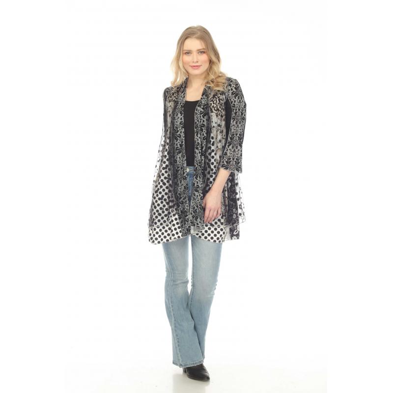3/4 Sleeve Mixed Fabric Novelty Open Front Cardigan by Kamana; Washable 80% Viscose/20% Polyester In Multi Sizes S-M-L-XL(2-2-2-2)