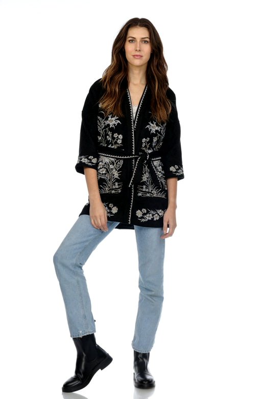 Embellished Open Front Moto Style Novelty Jacket by Lena Gabrielle;