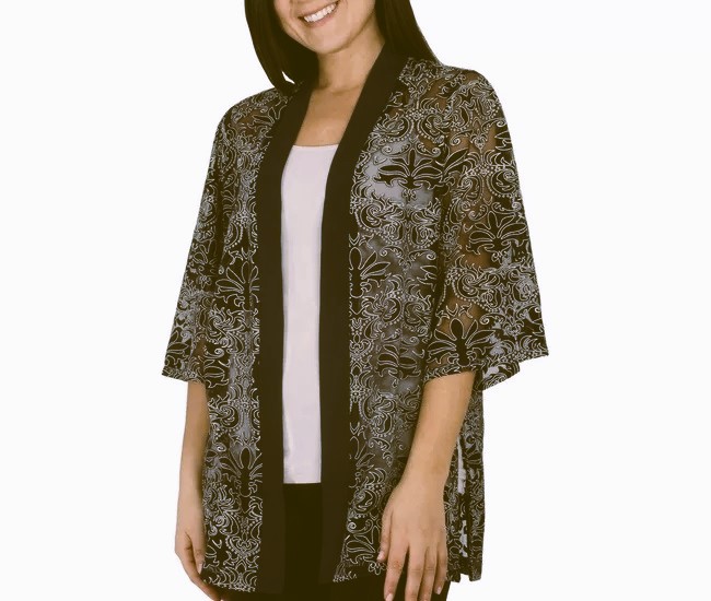 Long Sleeve Open Front Print Mesh Cardigan by NY Collection;